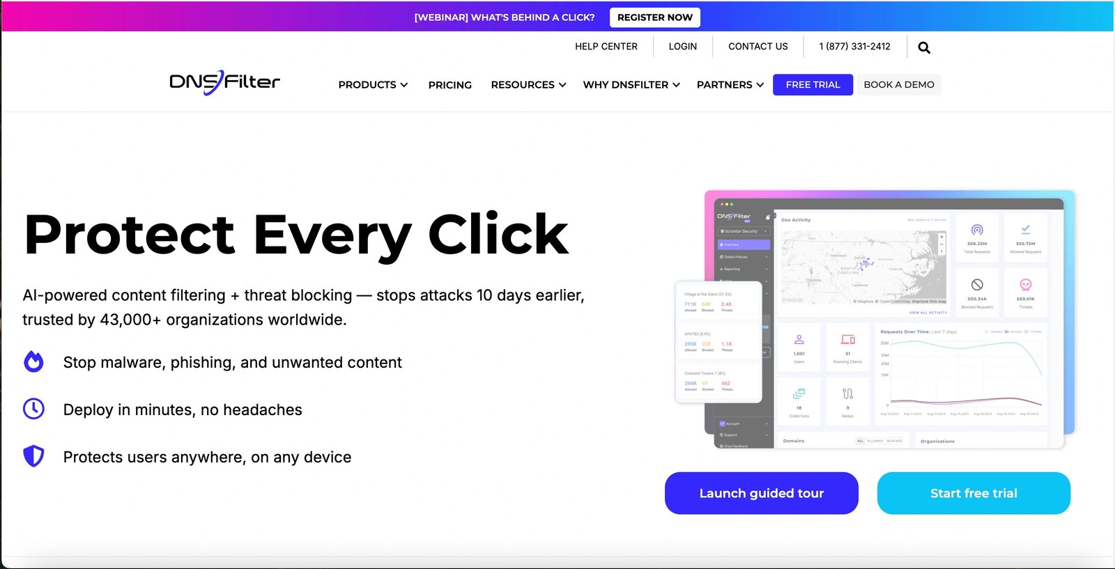 DNSFilter is a modern, AI-powered DNS filtering solution that offers fast deployment and easy management.