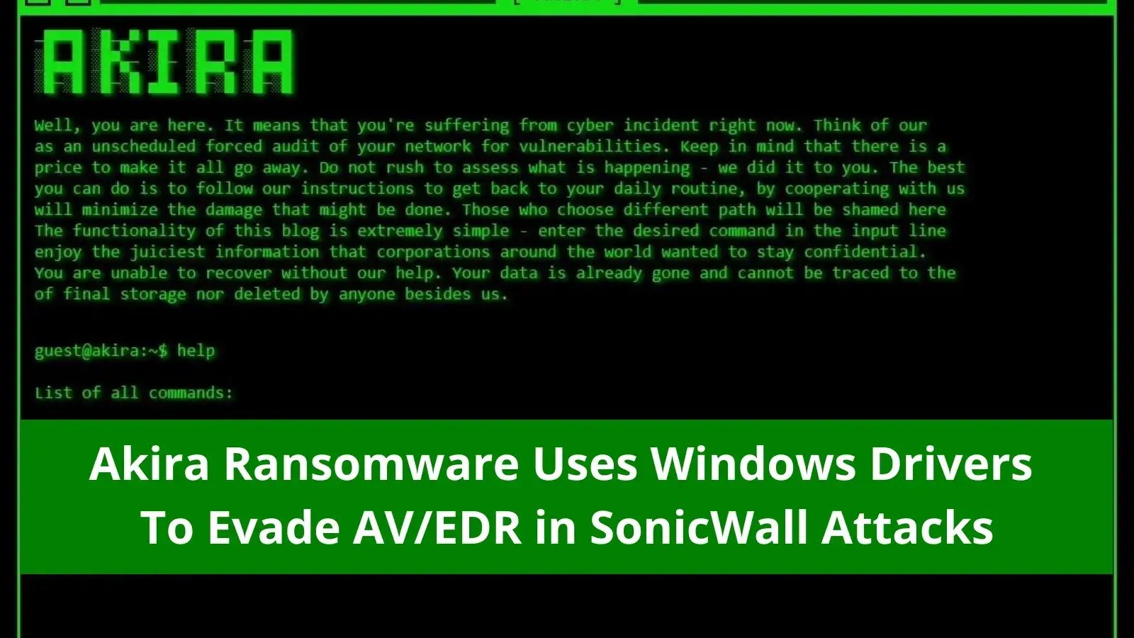 Security researchers at GuidePoint Security have identified a sophisticated campaign where Akira ransomware affiliates are leveraging malicious drivers to evade antivirus and endpoint detection systems following the exploitation of SonicWall VPN devices.