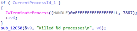 Figure 6 – Antivirus Terminator kills process using third-party driver.