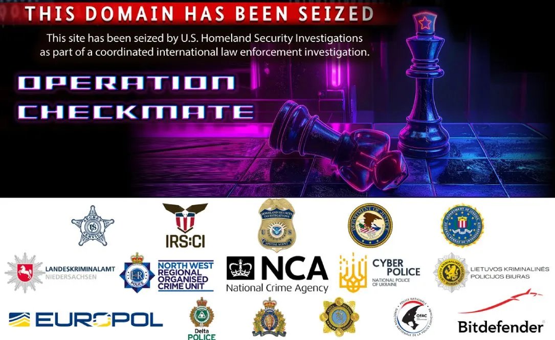 It features the logos of 17 law enforcement entities alongside the cybersecurity company Bitdefender, giving pole position to Homeland Security Investigations (HSI), a part of the Immigration and Customs Enforcement agency that focuses on transnational crime. HSI did not immediately respond to a request for comment.