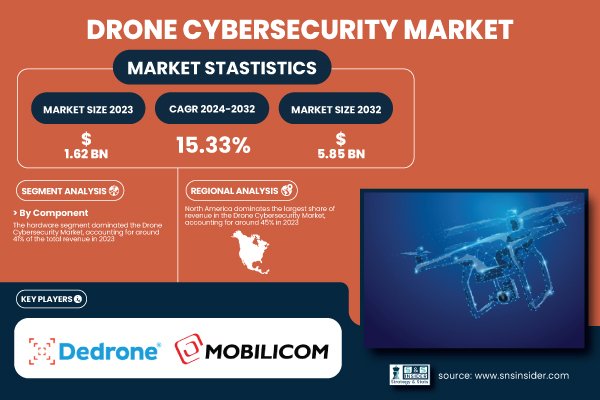 According to the SNS Insider Report, “The Drone Cybersecurity Market was valued at 1.62 Billion in 2023 and is projected to reach USD 5.85 Billion by 2032, growing at a CAGR of 15.33% from 2024 to 2032.”