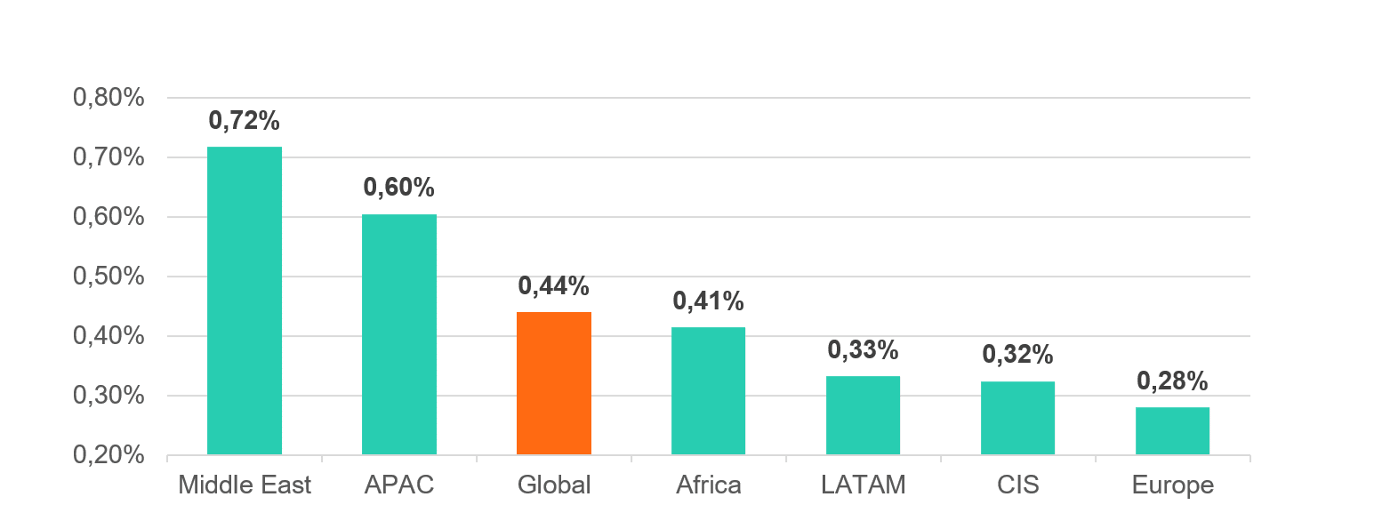 users affected by ransomware attacks increased to 0.44% by 0.02 p.p. The seemingly small percentage is typical for