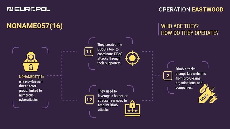 Between 14 and 17 July, a joint international operation, known as Eastwood and coordinated by Europol and Eurojust, targeted the cybercrime network NoName057(16).