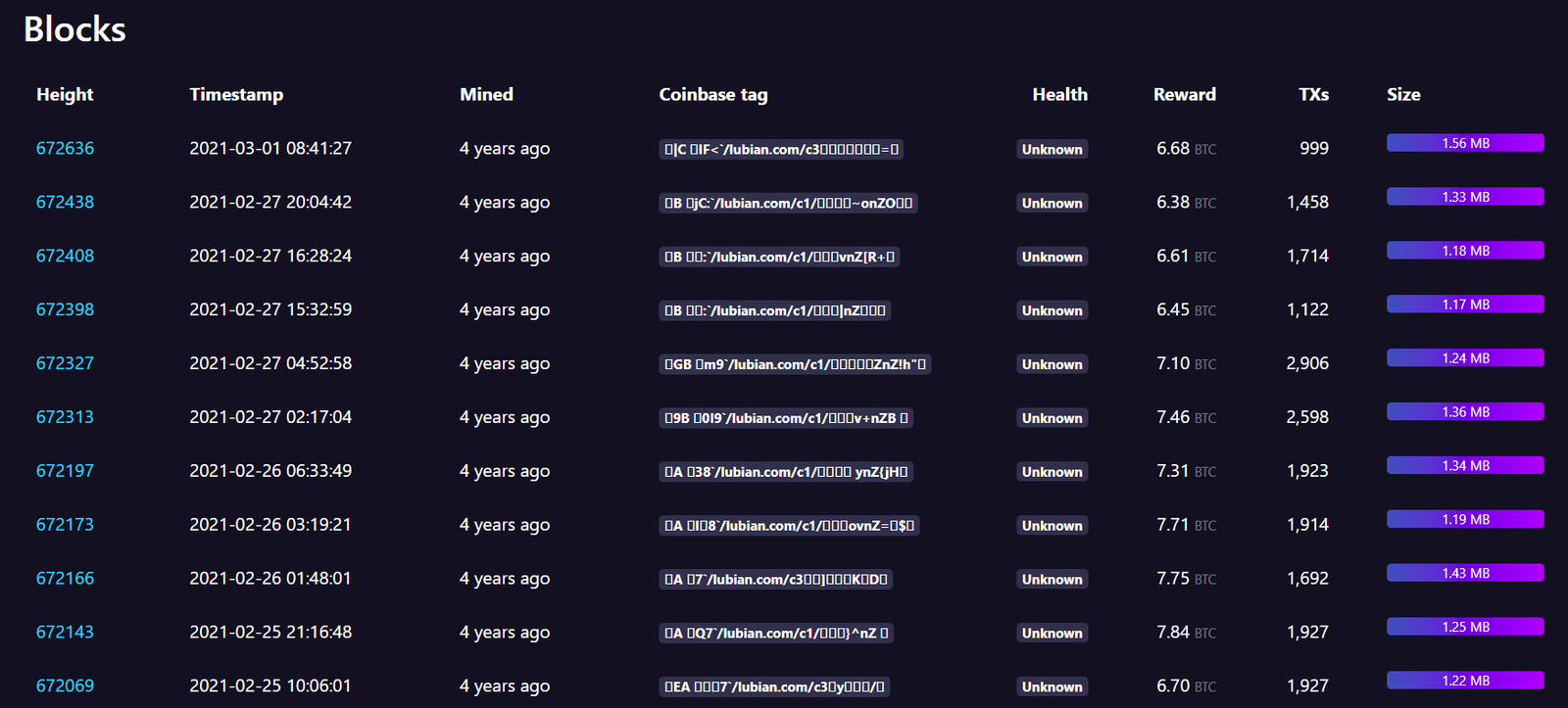 According to data from mempool.space, Lubian’s last known mining activity occurred on March 1, 2021, when it mined Bitcoin block 672,636.