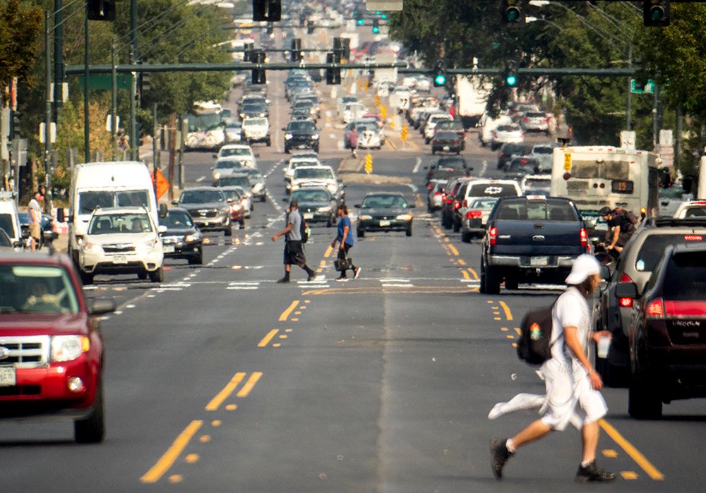 Pedestrians cross East Colfax Avenue, Sept. 7. 2017. (Kevin J. Beaty/Denverite)