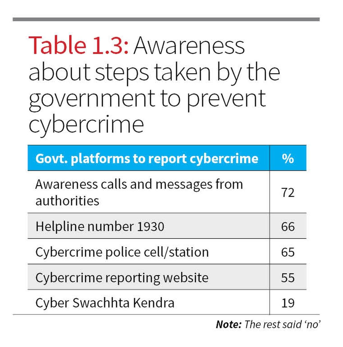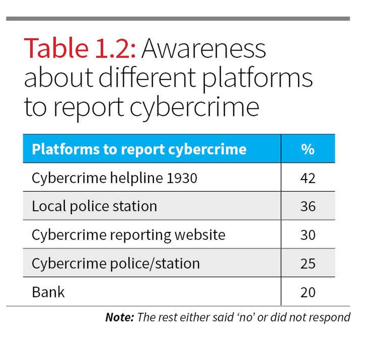 However, Table 1.2 shows that while many knew reporting was possible, only 42% knew of the national cybercrime helpline (1930), with even fewer being aware of cyber police stations (25%) or the reporting website (30%). This reveals a gap between awareness and digital reporting literacy.