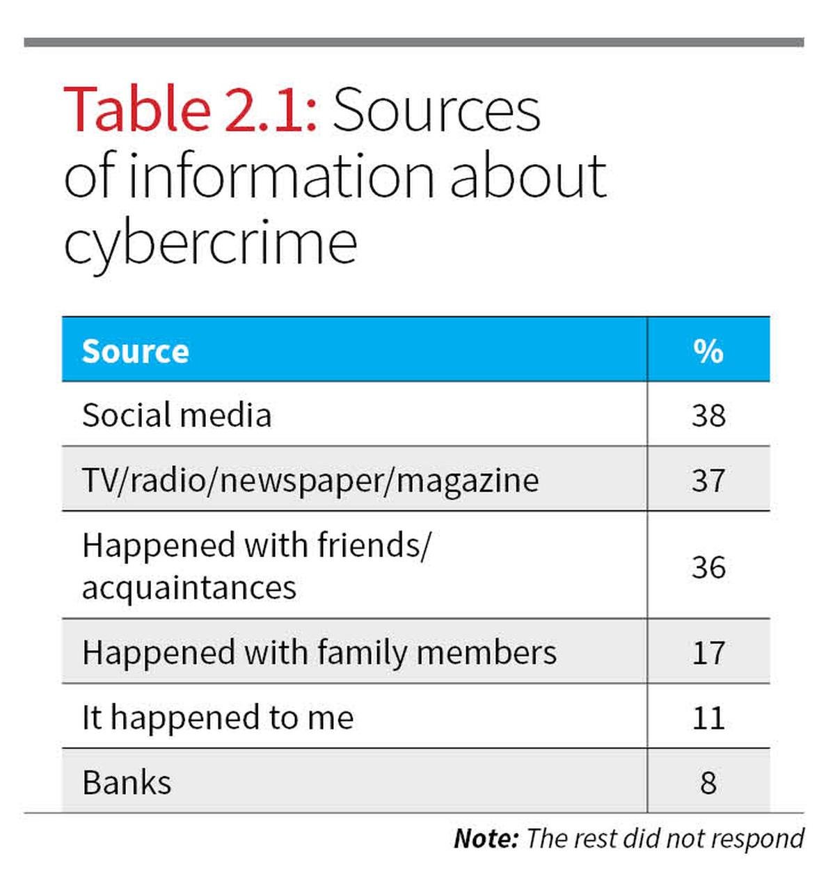 As shown in Table 2.1, 38% became aware through social media, 37% via traditional media, and 36% through personal experiences of friends or acquaintances. Notably, only 8% received information through banks, despite their central role in financial security.