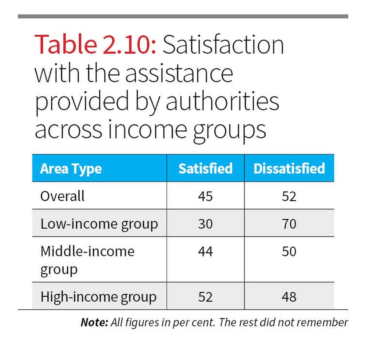 Disparities in satisfaction levels were evident across income groups (Table 2.10), highlighting systemic inequities.