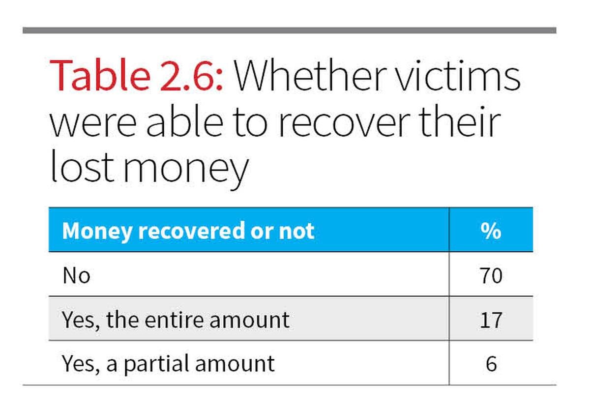 Among those who lost money, 70% reported they did not recover any part of it. Only 17% said the full amount was returned, and 6% reported partial recovery. This highlights the lack of existing institutional mechanisms for financial redressal.