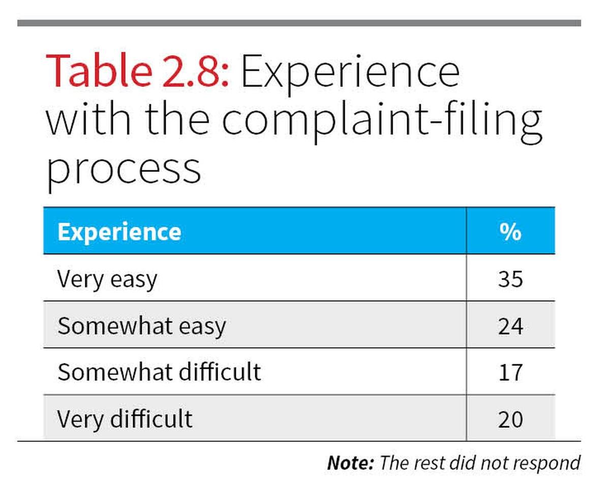 The complaint process itself yielded mixed responses, with 35% finding it “very easy” and 24% “somewhat easy”, but a notable 37% found it difficult to register a complaint (Table 2.8), suggesting procedural difficulties for users.