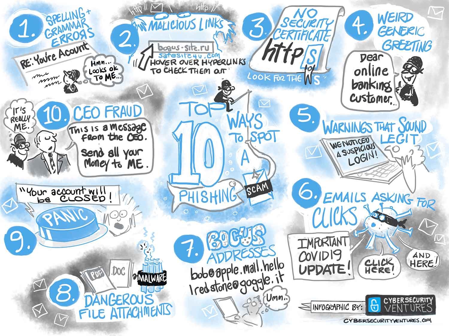If you’d like to include one of our infographics in your media, then you will need to provide attribution to us as the source (i.e. “according to Cybersecurity Ventures”), with a hyperlink to our site. Cybercrime Magazine will be featuring at least one new hand-drawn infographic every month going forward in 2020, so keep an eye out for the latest!