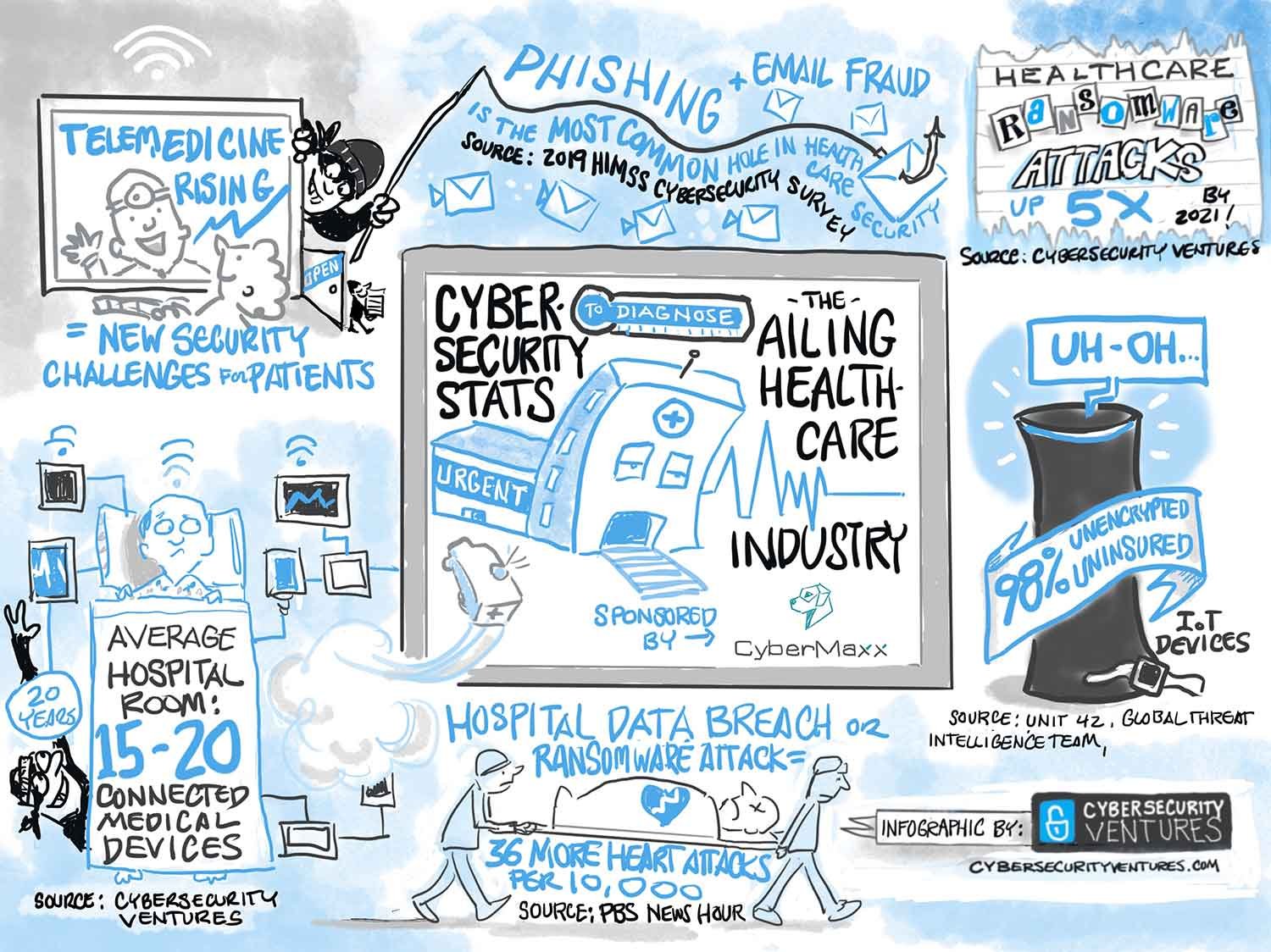 Cybersecurity Ventures predicts that the healthcare industry will spend $65 billion cumulatively over five years, from 2017 to 2021, on cybersecurity products and services. But after paying all those bills, many hospitals will not pass their cyber physicals. This infographic, sponsored by CyberMaxx, illustrates the problem.