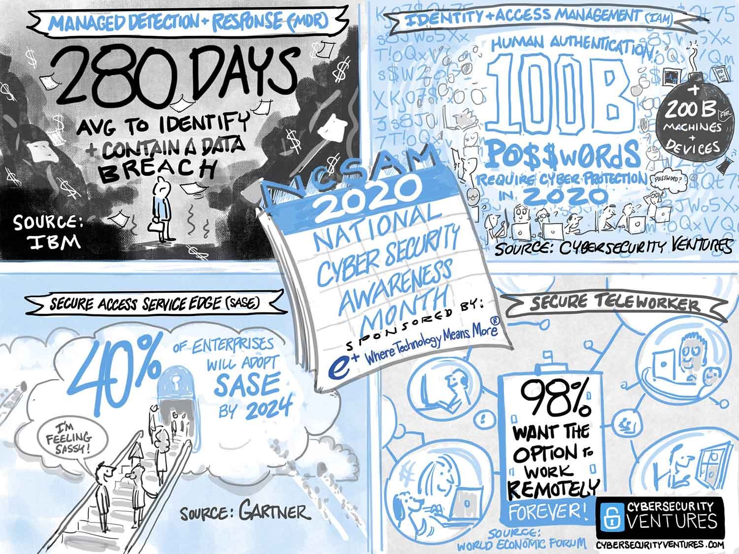 National Cybersecurity Awareness Month (NCSAM) was launched by the National Cyber Security Alliance (NCSA) and the U.S. Department of Homeland Security (DHS) in October 2004. In observance of NCSAM 2020, Cybercrime Magazine is excited to share our infographic for chief information security officers (CISOs) and IT security teams globally. Sponsored by ePlus.