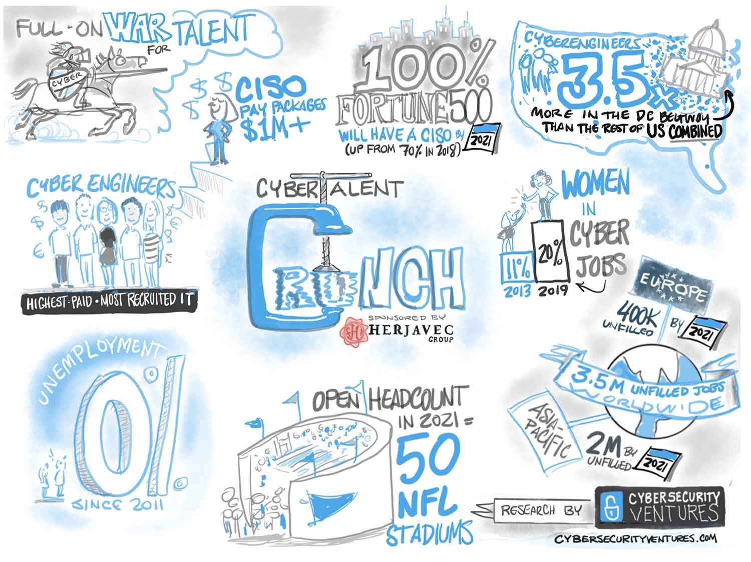 Cybersecurity Ventures’ 2019/2020 Official Annual Cybersecurity Jobs Report, which is sponsored by Herjavec Group, predicts that there will be 3.5 million unfilled cybersecurity jobs by 2021, up from 1 million positions in 2014. This infographic sheds light on the cybersecurity labor crisis.