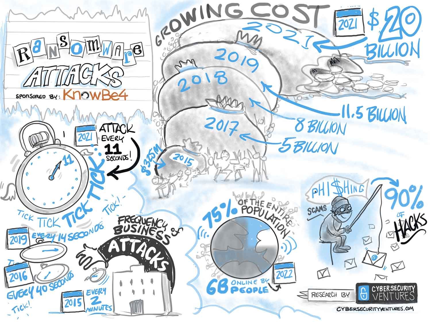 Global ransomware damage costs are predicted to reach $20 billion by 2021 – which is 57X more than it was in 2015. KnowBe4 is the world’s most popular integrated platform for security awareness training combined with simulated phishing attacks – to help protect against ransomware infections, and they’ve sponsored this infographic.
