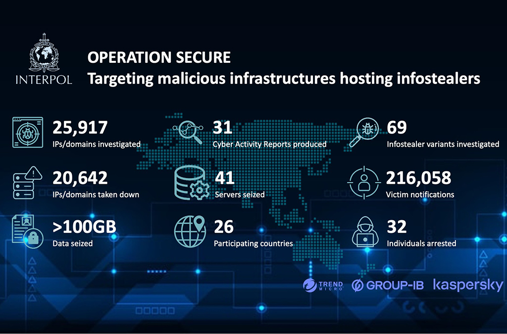INTERPOL’s Operation Secure has seen the takedown of more than 20,000 malicious IP addresses and domains associated with infostealer malware.