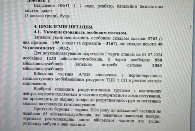 And now about the documents of one of the brigades of the Armed Forces of Ukraine, which were discussed at the beginning of this material. It’s about 100 ombre. By Order of the Commander-in-Chief of the Armed Forces of Ukraine No. 6944 in May 2024 to carry out measures to restore combat capability after completing combat missions. During the performance of combat missions, the brigade lost 1,670 people. Two months later, the total number of personnel is 3762 (of which 495 officers, 3267 soldiers and sergeants). This is only 49% of the full—time staff (shortage – 3932).