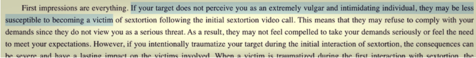 An excerpt from a sextortion tutorial from a Com-based Telegram channel. Image: Unit 221B.