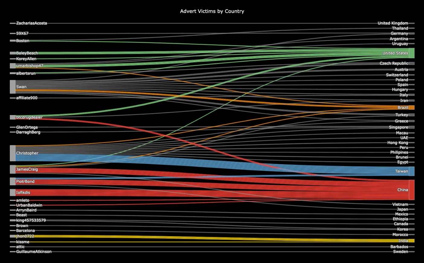 LockBit adverts’ (i.e., affiliates’) victims by country (Source: Trellix)