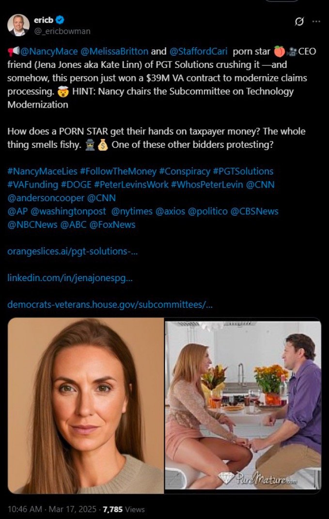 In her pleading (.pdf), Mace accused Sullivans Island, S.C. resident Eric Bowman of defamation – asking a Charleston County court to enter a judgment against him and assess both monetary and punitive damages. According to Mace’s complaint, the 45-year-old businessman made “multiple, objectively false assertions of fact to third parties asserting that (Mace) committed illegal acts and abused her office as a member of the House of Representatives by steering and influencing the award of VA contracts to friends and political connections.”