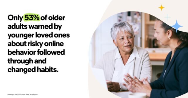 According to Avast, nearly 60 percent of older loved ones have already fallen victim to cybercrime. Even when younger family members raise the alarm, the message does not always get through. Although 84 percent of adults say they have spoken to older relatives about potentially risky online habits, only 53 percent of those warned have taken the advice seriously and made changes