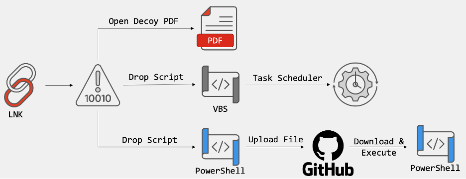Researchers from FortiGuard Labs have uncovered a high-severity spying campaign targeting South Korean companies. Discover how North Korean hackers are using LNK files, hidden PowerShell scripts, and legitimate GitHub repositories to evade detection and steal sensitive system data from Windows users.