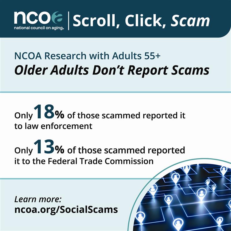 Click below to download NCOA’s ‘Scroll, Click, Scam: How Social Media Platforms Enable Older Adult Scams’ resources: