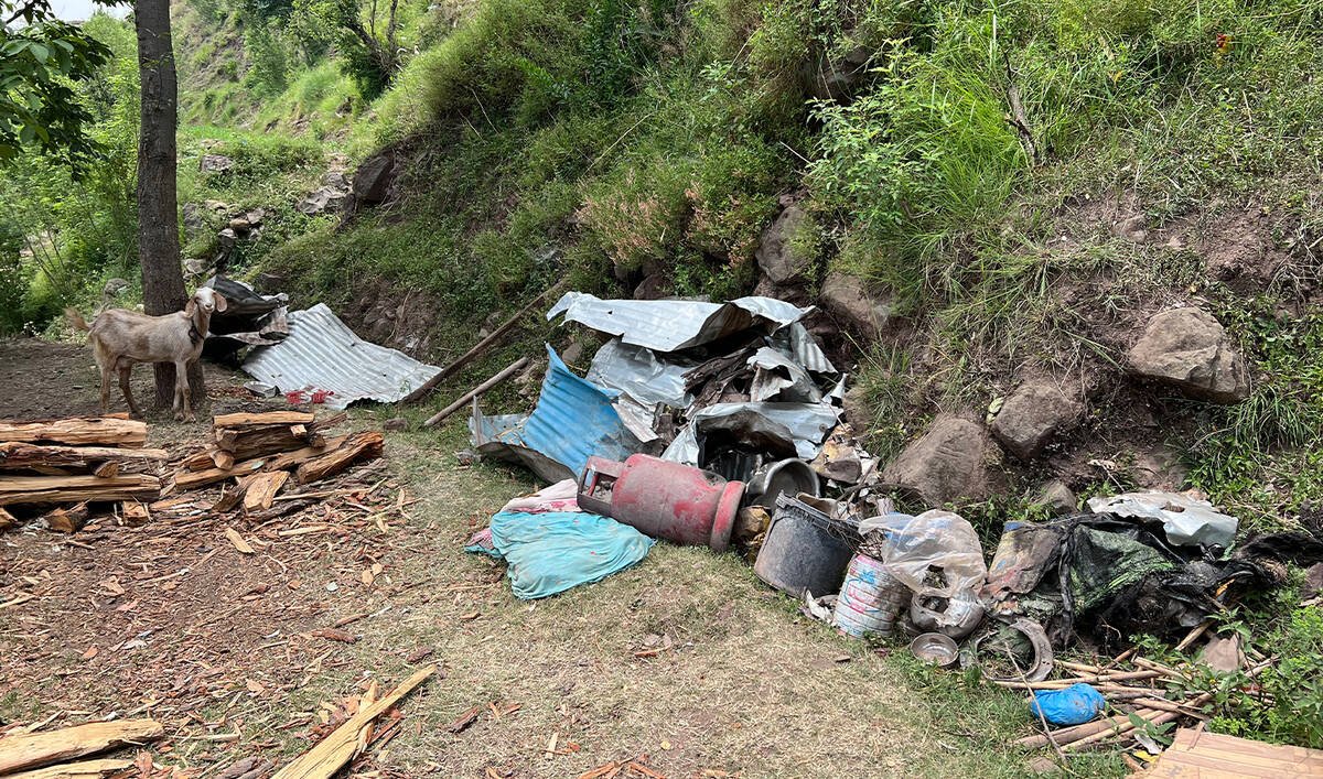 Abbaspur, POONCH: Blackened from the explosion, shards of a tin roof loosely hang from the branches of a wild apricot tree in the border village of Chaffar in Azad Kashmir’s Poonch district. What once used to be a modest kitchen is now littered with shattered stone, twisted metal and rubble.