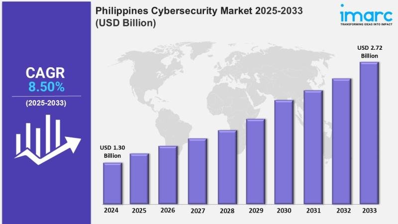 The latest report by IMARC Group, “Philippines Cybersecurity Market Size, Share, Trends and Forecast by Component, Deployment Type, User Type, Industry Vertical, and Region, 2025-2033,” provides an in-depth analysis of the Philippines cybersecurity market. The report also includes competitor and regional analysis, along with a breakdown of segments within the industry. The Philippines cybersecurity market size reached USD 1.30 billion in 2024 and is projected to grow to USD 2.72 billion by 2033, exhibiting a growth rate (CAGR) of 8.50% during 2025-2033.