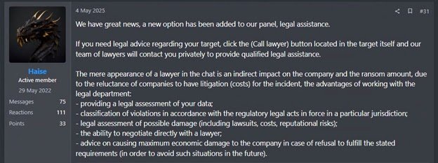 Additionally, Qilin has introduced what it terms “legal assistance” services, where the group analyzes stolen data to identify potential regulatory violations and prepares documentation for submission to relevant authorities including tax agencies and law enforcement bodies.