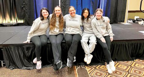 (Back, left to right) Jocelyn Erb, Karinna Caldwell, Sami Blaney, (front, left to right) Nataleigh Norman, and Ashley Pate at the regional Science Olympiad competition at Marietta College. Erb said Warren received first place.