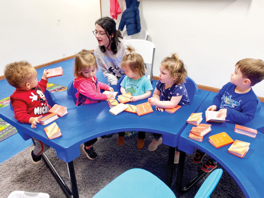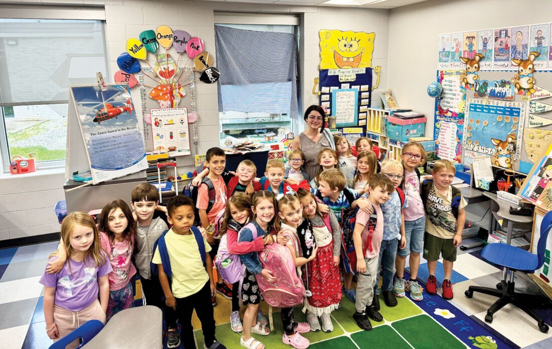 - Jocelyn Erb helping out students in a kindergarten class at Warren Elementary.