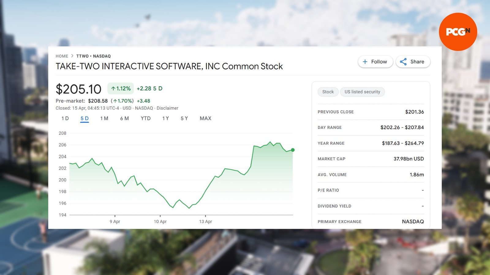 April 14 has now come and gone, and the data does appear to have been released (I’m not linking it here as it was both obtained illegally, and likely contains malware). On paper, the leak should have been damning. In reality, Take-Two’s stocks have soared.