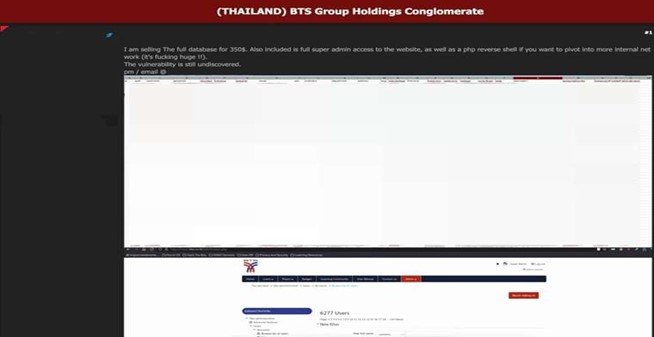 Thai Conglomerate BTS Group Holdings Data Advertised on a Leak Site