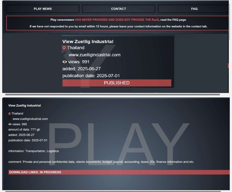 Play Ransomware attacked and published the data of the View Zuellig Industrial